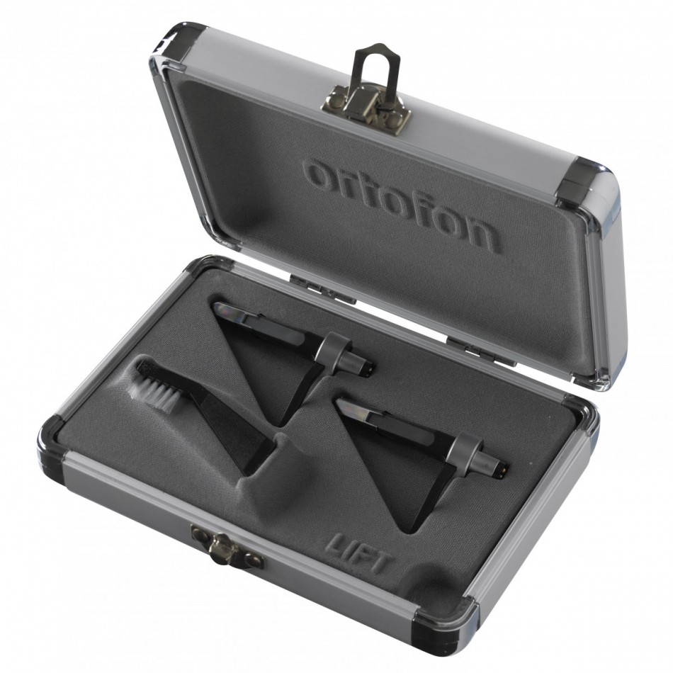 Conjunto de duas Cabeças com respectivas agulhas, e pequena escova para limpesa das mesmas  em caixa de alumínio Ortofon.